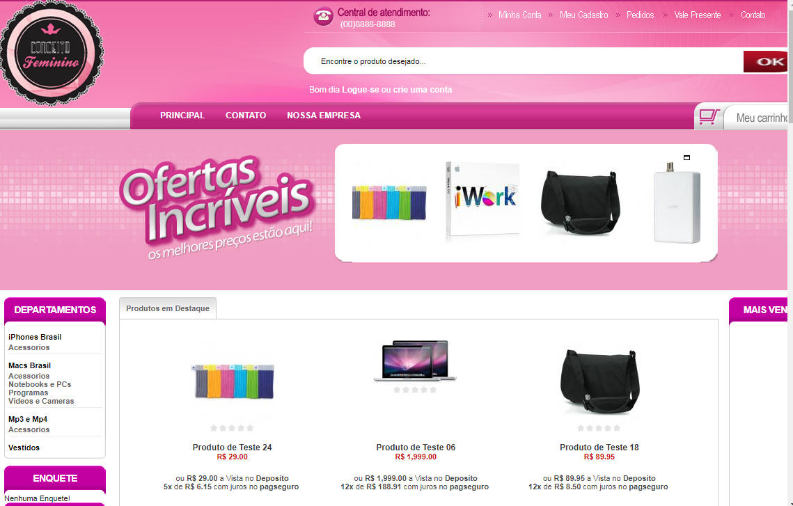 Ofertas, novidades e lançamentos completamente visíveis: Ao entrar em sua Loja seu cliente já saberá quais são as novidades, ofertas, últimos produtos colocados a venda e lançamentos.